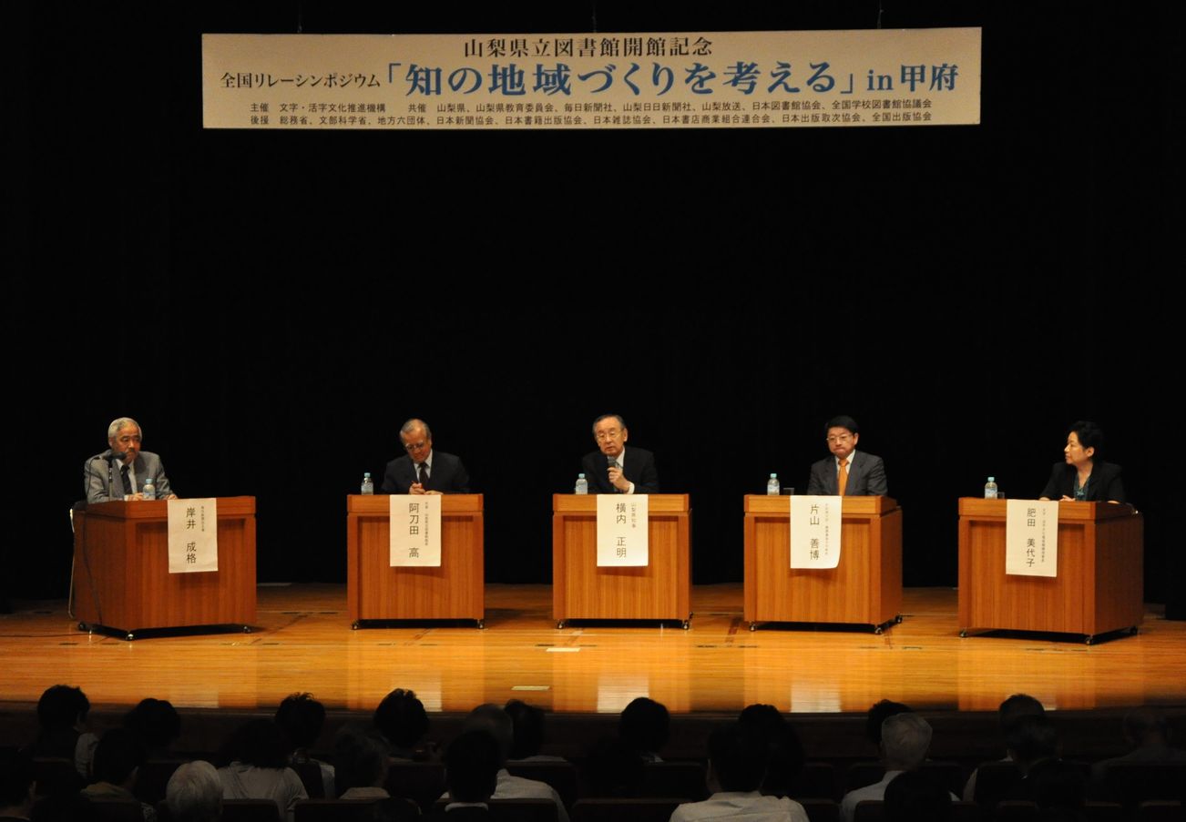 文字・活字文化推進機構主催、毎日新聞社など共催による図書館と地元書店の連携や、地域の読書環境のあり方を考える全国リレーシンポジウム「知の地域づくりを考えるin甲府」が7月21日、甲府市の山梨県立文学…