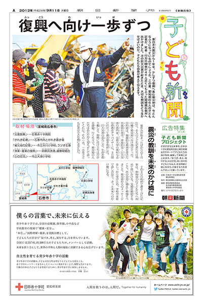 朝日新聞名古屋本社は、日本赤十字社愛知県支部と協力して、東日本大震災の被災者の経験を未来に伝え、自ら防災について考えることをテーマに、小学校高学年(4〜6年生)を対象とした“子ども新聞プロジェクト”…