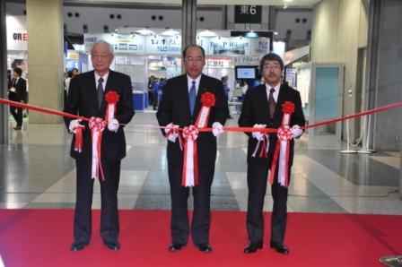 テープカットをする芝会長、村田副会長、五阿弥委員長