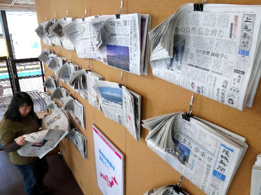 下野新聞NEWS CAFEで、全国の正月紙面を展示