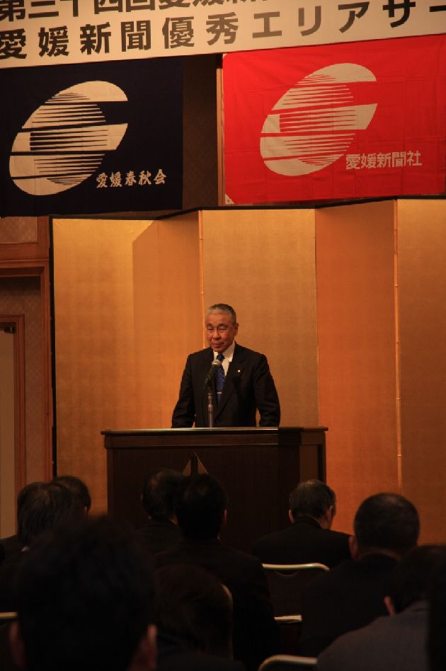 愛媛新聞のエリアサービス(販売所)で組織する愛媛春秋会第60回定期総会と愛媛新聞販売所協同組合第34回定期総会が1月20日、エリアサービスの所長ら約140人が出席して松山市内で開催された。