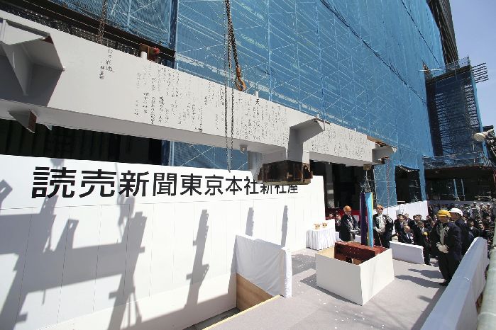 東京・大手町で建設中の読売新聞東京本社新社屋(地上33階建て)が、完成時の高さ200メートルに達し、4月4日、建設現場で上棟式が行われた。ビルは今年10月末に完成。東京本社は東京・東銀座の仮社屋から…