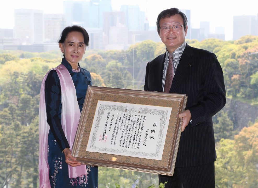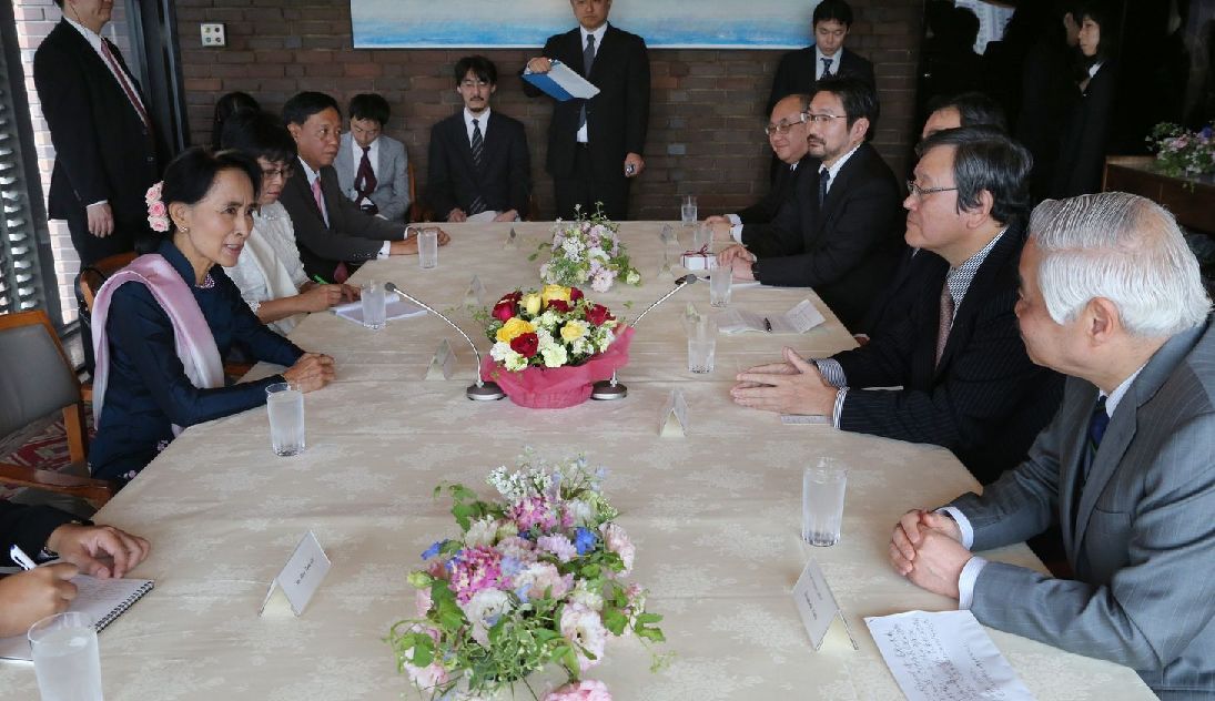 4月19日まで日本に滞在している、ミャンマー最大野党「国民民主連盟(NLD)」のアウンサンスーチー議長(67)が16日、毎日新聞東京本社を訪問し、朝比奈豊社長らと会見した。今回の訪問は、「毎日新聞で…