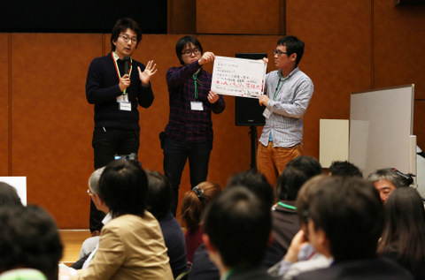 話し合ったアイデアを発表する参加者(2月20日、東京・中央区の朝日新聞東京本社)