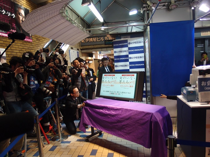 文藝春秋は4月18日、村上春樹の短編集『女のいない男たち』を初版20万部、発売前重版10万部の計30万部で発売したが、同日午前0時から販売を開始する書店や、早朝から販売する書店が数多くあった。