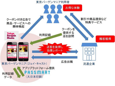 ジェイ・キャスト(東京・千代田区、大森千明社長 )と大日本印刷(DNP)は、スマートフォン向けアプリを利用した新しい広告商品を共同で開発し、ジェイ・キャストが運営するお得情報サイト「東京バーゲンマニ…