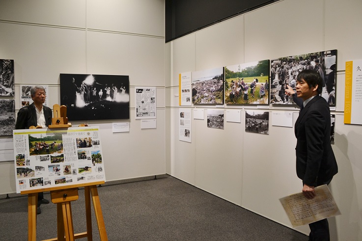 31日に開かれたオープニングセレモニーで、朝日・西村陽一常務取締役編集担当はこれまでの経緯などを紹介。「昔ならば『ネガを発見』という一報だけで終わっていたが、今回は沖タイと共同取材をして隠された物語と人物を探り当て、デジタルで展開、カラー化をほどこし、写真集を出し、今回の魅力的な写真展の開催につながった。1枚のネガから始まった大きな旅がいったん完結するが、この写真展でさらに多くの関心を呼ぶと確信している」と語った。