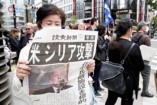 読売新聞社は4月14日、米国などによるシリア攻撃を伝える号外2万270部を発行し、東京、大阪などの主要都市で配布した。東京都内は銀座・数寄屋橋交差点、渋谷駅北口ハチ公前で配った。 号外はブラ…