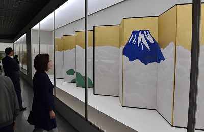 「群青富士」を鑑賞する来場者