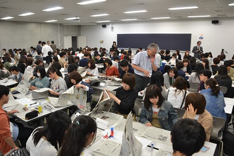 具体的には、同学科の1年生全員が1年間、読売と朝日の2紙を自宅で購読。授業では学生が新聞を読んでいることを前提に、必修授業の「基礎演習」「情報学基礎論」「メディアコミュニケーション学基礎論」で、新聞を活用した授業を展開する。
