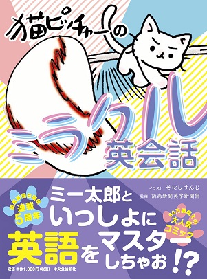 読売新聞日曜版に連載中の人気漫画「猫ピッチャー」の英語翻訳版から、日常会話で使える便利な表現を厳選した『猫ピッチャーのミラクル英会話』=写真=が8月10日、中央公論新社から発売された。「おつかれさま」…