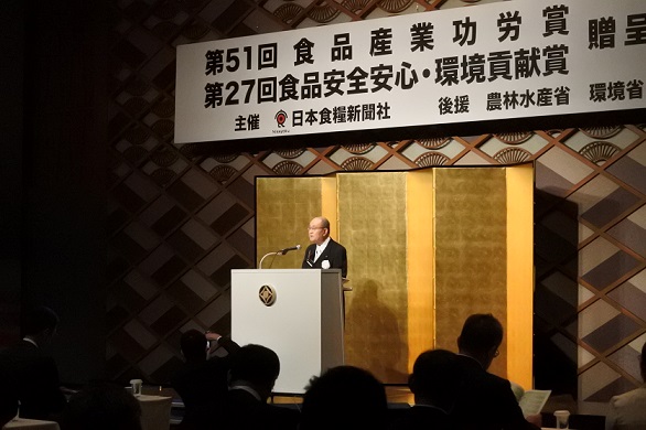 日本食糧新聞社(今野正義会長CEO)制定・農林水産省後援の「第51回食品産業功労賞」と「第27回食品安全安心・環境貢献賞」の贈呈式が11月2日、東京・紀尾井町のホテルニューオータニ東京で開かれ、受賞…