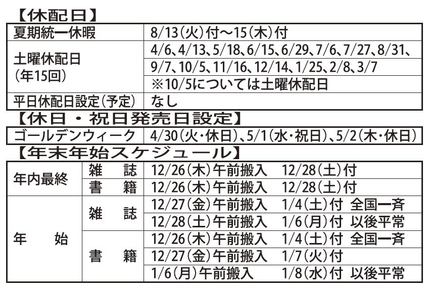 雑誌協会理事会、雑誌の土曜休配日は年間15日に